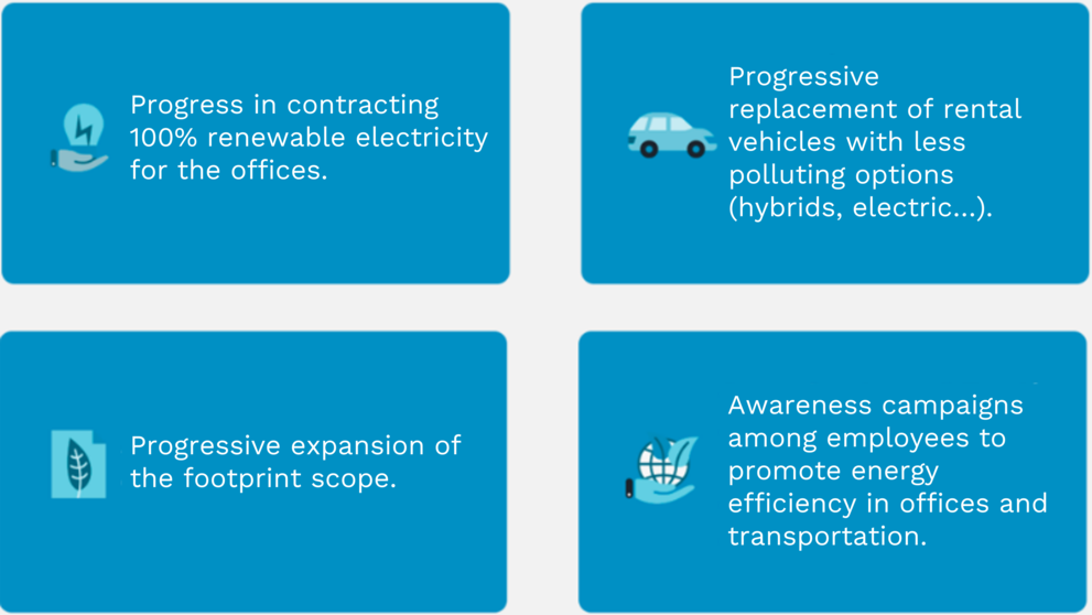 Since 2020, we have been registering our Carbon Footprint in the “Carbon Footprint, Offset and CO₂ Absorption Projects Registry” of the Ministry for the Ecological Transition and the Demographic Challenge (MITERD). This registry reflects the efforts of Spanish organizations to minimize their environmental impact through three levels of action: calculation, reduction, and offsetting of their carbon footprint.